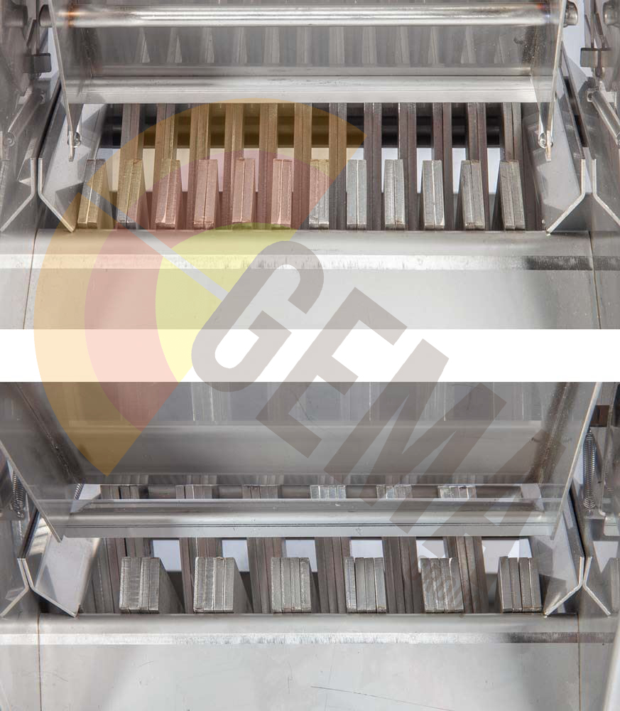 Los modelos de sobremesa portátiles tienen una estructura idéntica y se pueden colocar fácilmente en cualquier lugar. Ambas cuentan con 48 barras ajustables de canal de 1/8 pulg. (3 mm) de ancho para una máxima versatilidad y están construidas con tolvas y marcos de acero inoxidable.